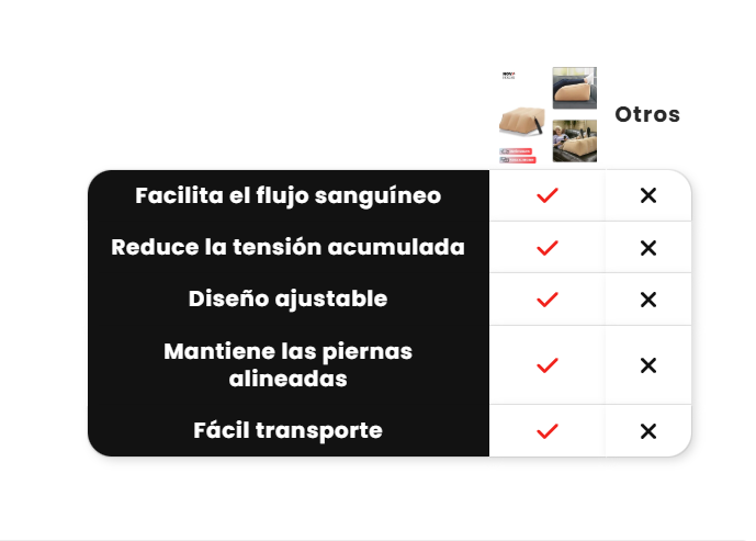 Mantiene tus piernas en la posición clínica precisa para facilitar el drenaje de líquidos, disminuir la presión venosa y aliviar la hinchazón causada por la mala circulación.